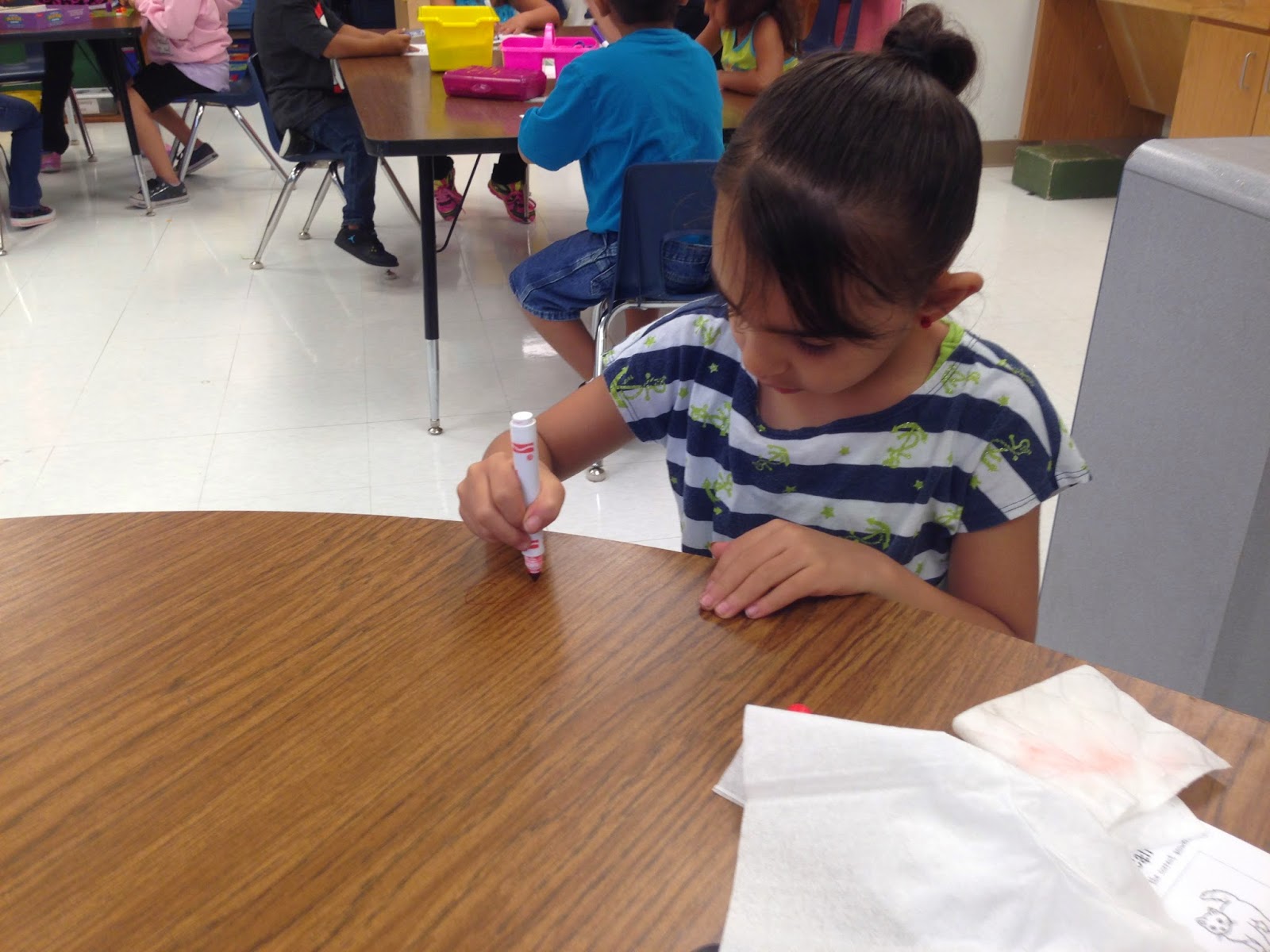 Station 4: My table. At my table this week, we practiced writing numbers with markers ... on the table! How cool is that!?! We did talk about NOT writing on furniture at home and only at school when I say it is ok to do so! We focused on writing numbers 1 - 5 properly and got a little ambitious and went on to 10 with some groups.