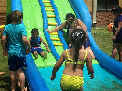 Friday was Water Day! And we were SOOOOO glad that it didn't rain! We waited until after music, once it had warmed up a bit, slathered on sunscreen and then headed outside for a long day in the water and sun!