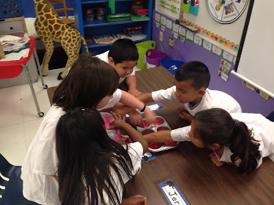 Tuesday, we took a few of our milk jugs and decided to reuse them for something in the classroom. The kids painted them different colors (I'll have to spray paint them later) and we will use them to hold our sock erasers.
