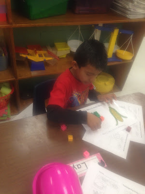 The next week was a super short week with only 2 days of school! We did a lot of math, science and social studies those days since it was a full week. In math, the kids did a Nearpod assessment with counting, writing and representing numbers; used linking cubes to build Thanksgiving foods; and showed greater than and less than with Thanksgiving pictures. I'm not sure what was going on with my phone, but the pictures were really blurry that day!