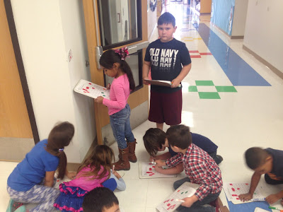 We started off the morning by going on a hidden picture scavenger hunt. We walked around the school and found numbers that told us what color to color them on our hundreds chart.